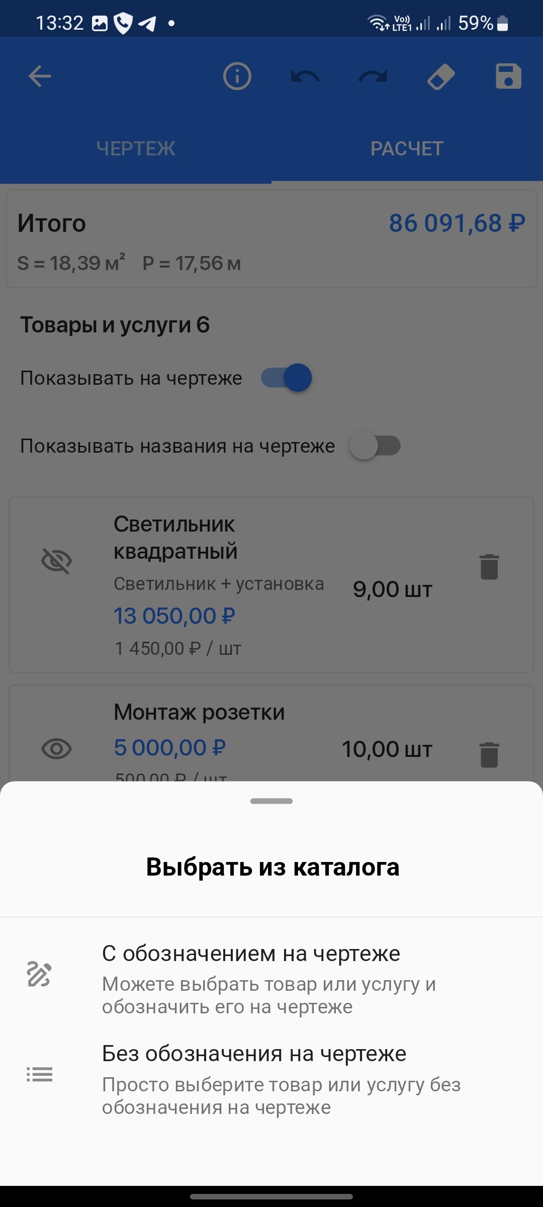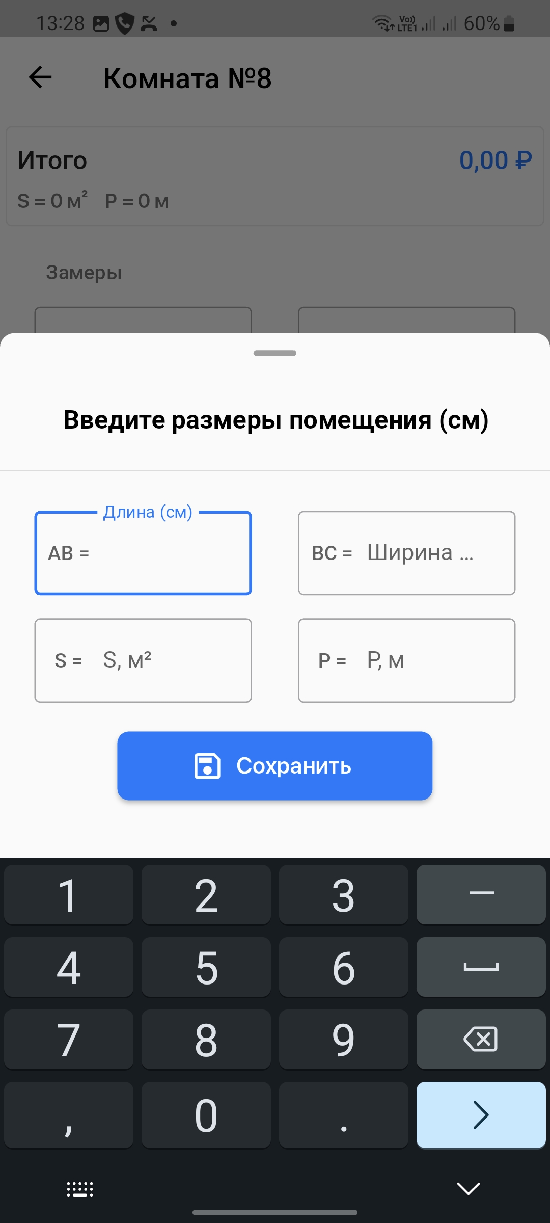 - Быстрый расчёт — введите площадь, периметр или размеры, чтобы сразу получить смету.